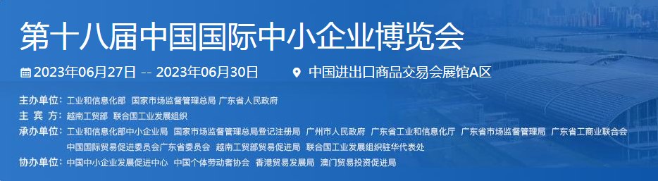 第十八屆中國國際中小企業(yè)博覽會(huì)將于2023年6月27日-30日在廣東省廣州市海珠區(qū)中國進(jìn)出口交易會(huì)展館A區(qū)盛大舉辦。