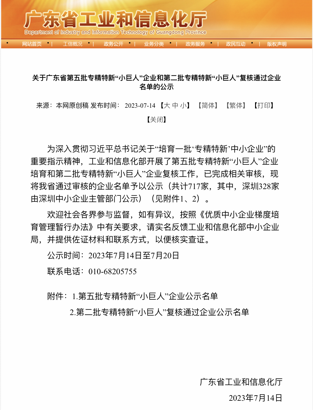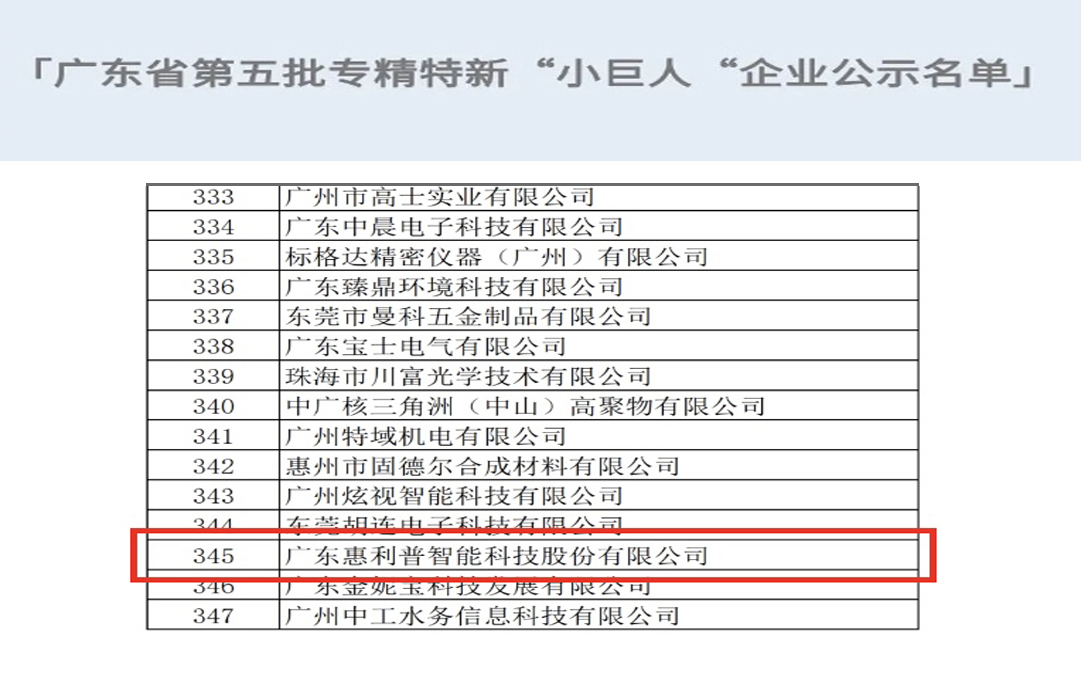 為深入貫徹習近平總書記關于“培育一批‘專精特新’中小企業”的重要指示精神,工業和信息化部開展了第五批專精特新“小巨人”企業培育工作,并已公示完成,廣東惠利普智能科技股份有限公司成功入選。