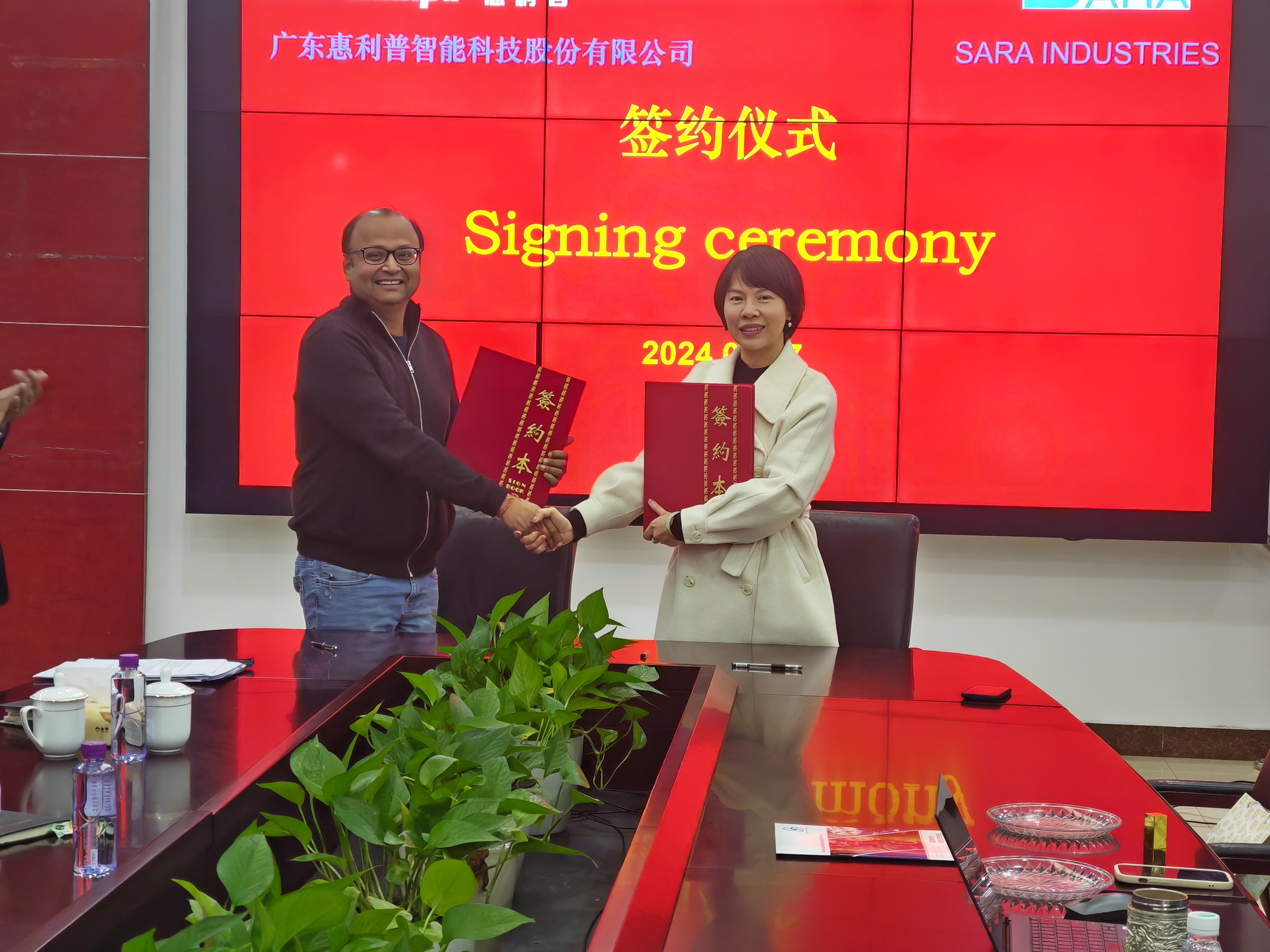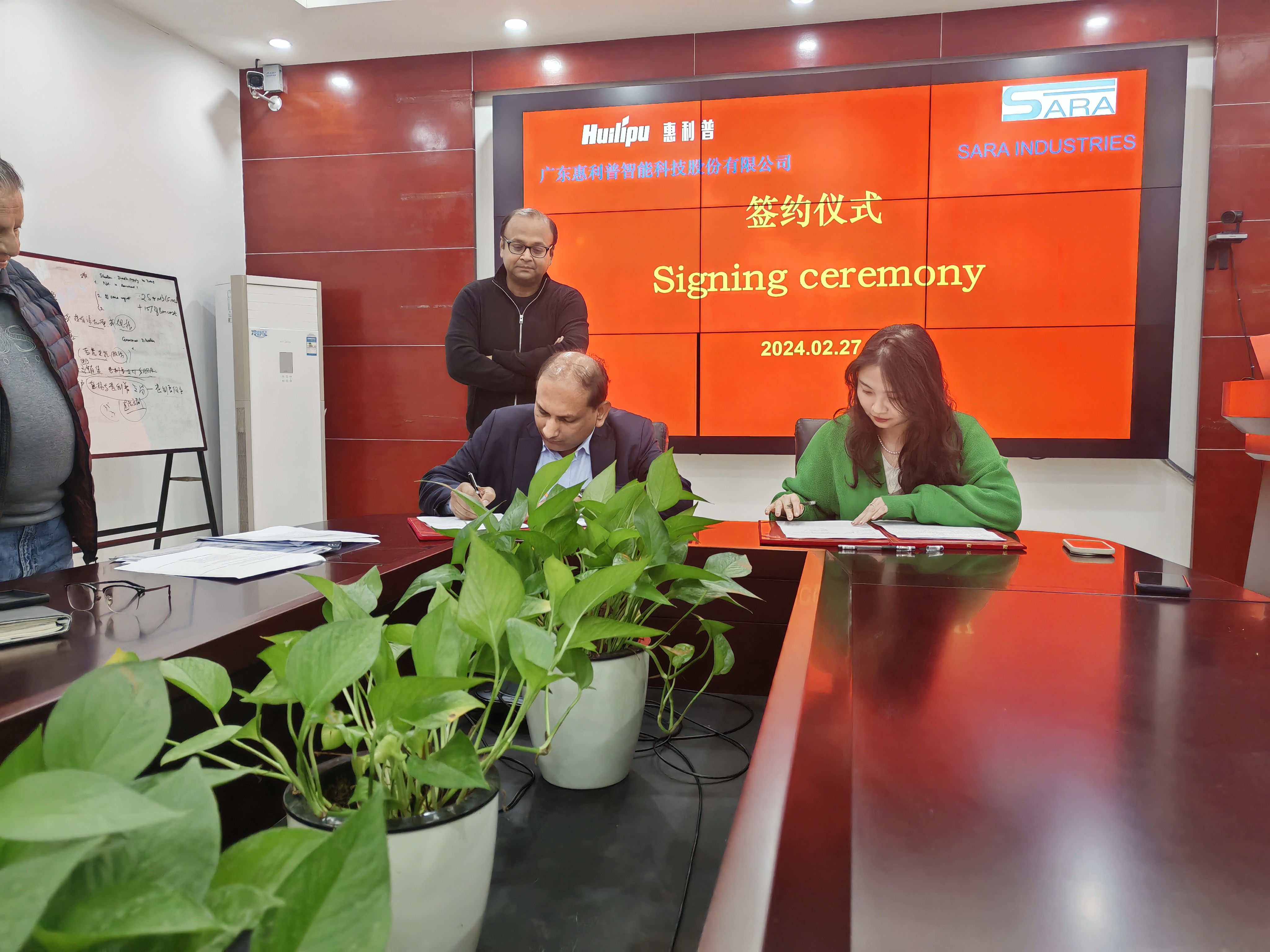 熱烈祝賀印度SARA INDUSTRIES與廣東惠利普智能科技股份有限公司合作成功簽約!